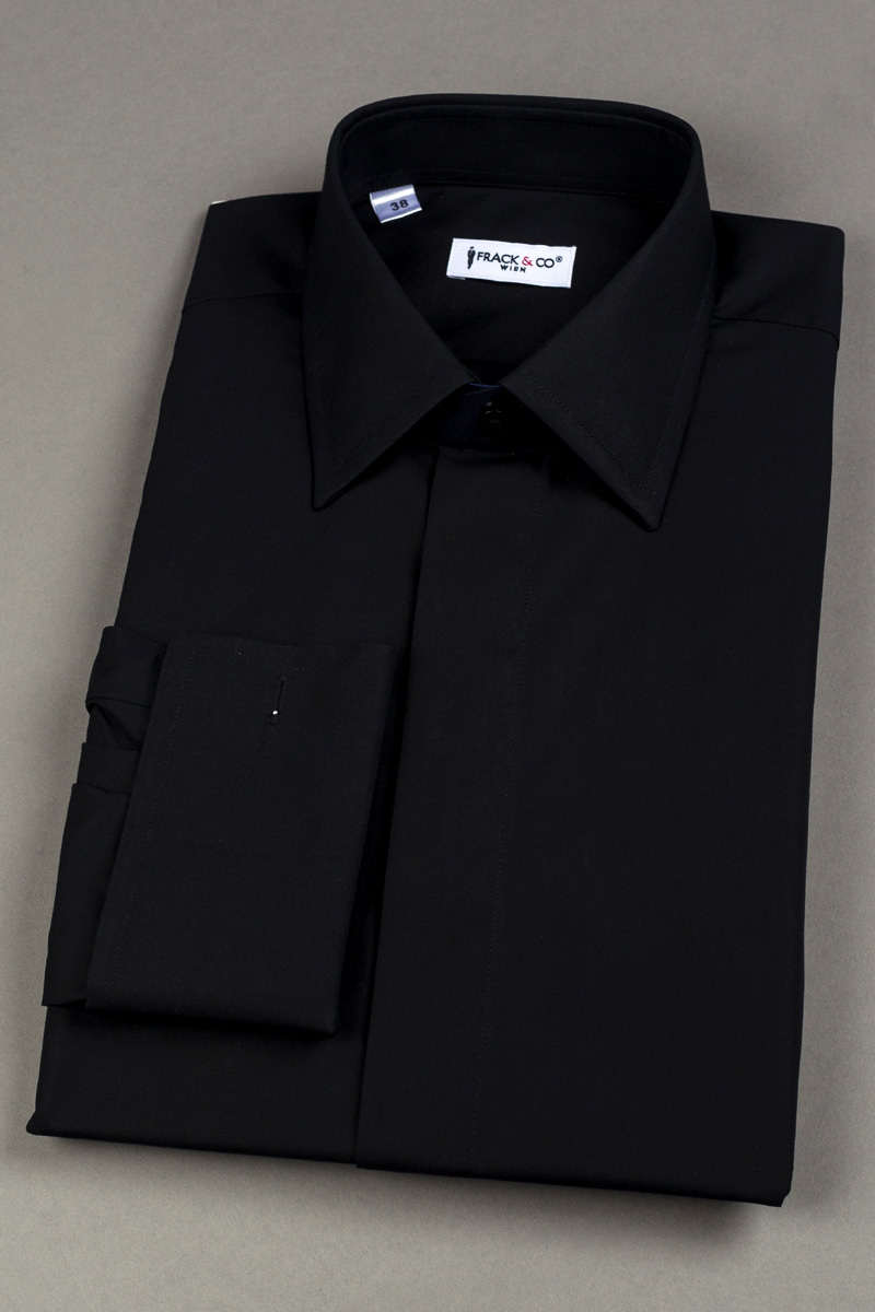 Spezielles Smokinghemd in schwarz. Passend zum Dinner Jacket.