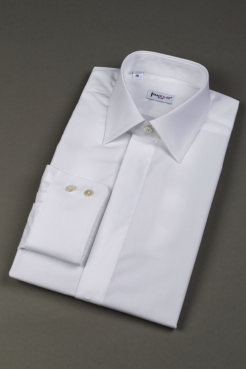 Spezialhemd für Musiker. Verdeckte Knopfleiste mit normalen Manschetten.