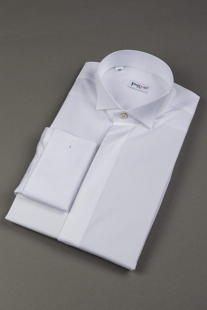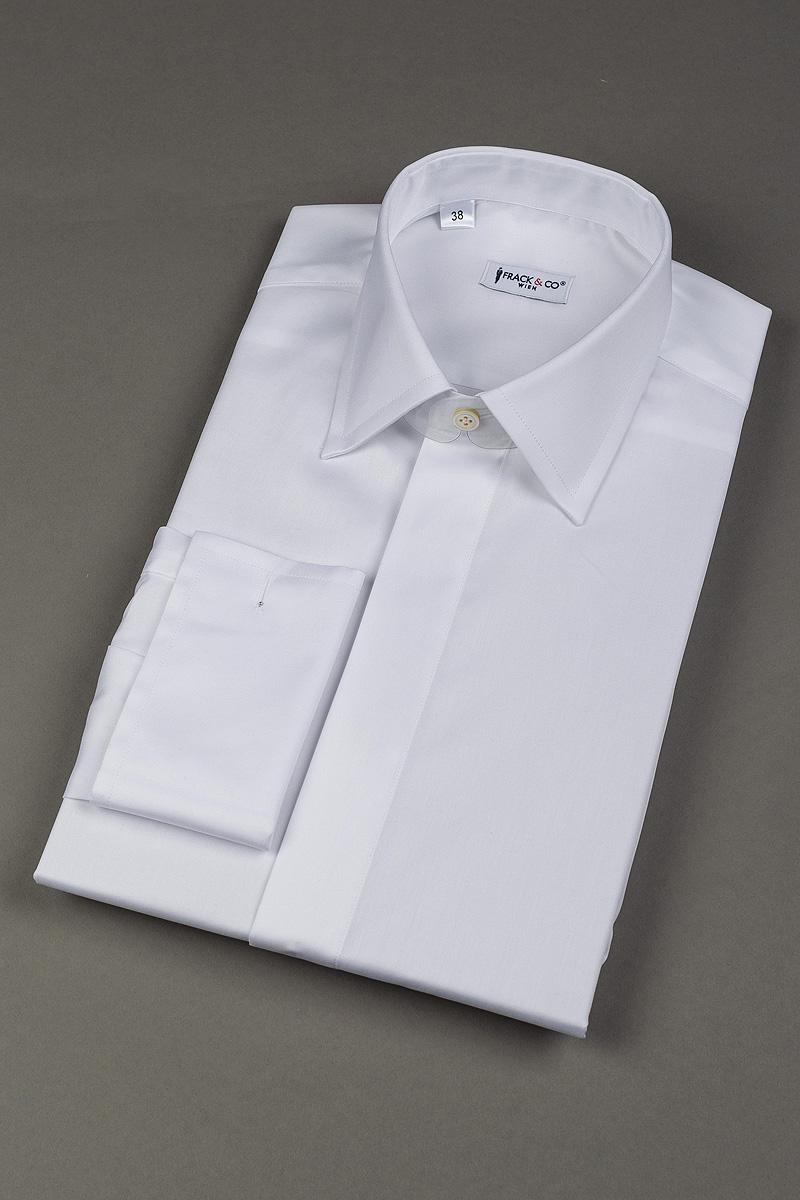 Classic Tuxedo shirt with covert buttons. Available with Kent or wing collar, regular or slim fit, and with extra long sleeves when needed.
