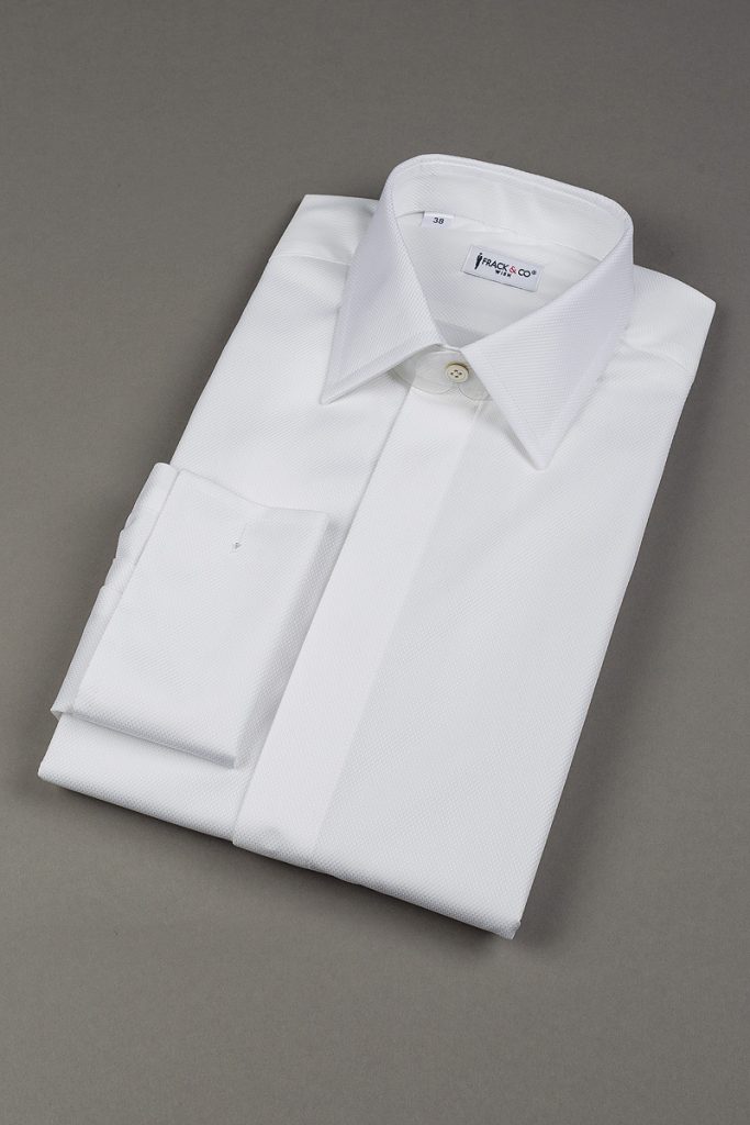 Chemise de smoking en tissu structuré avec col rabattu ou col pliable Disponible également en versions rallongées.